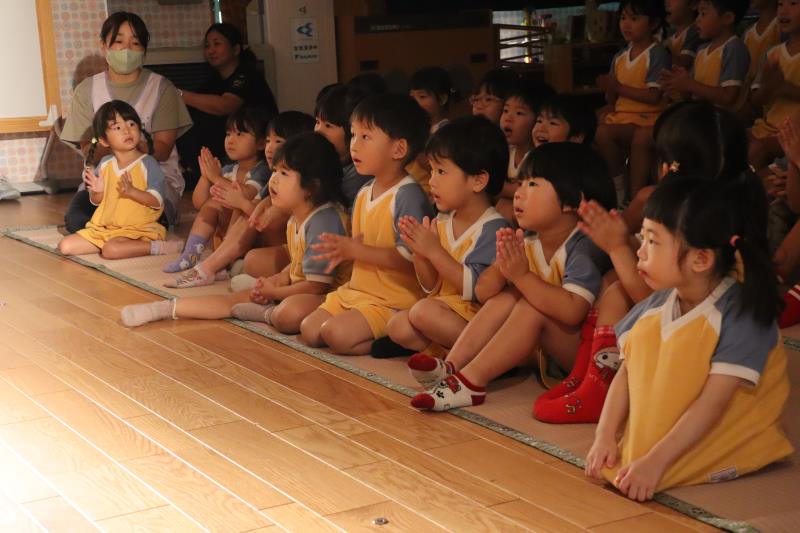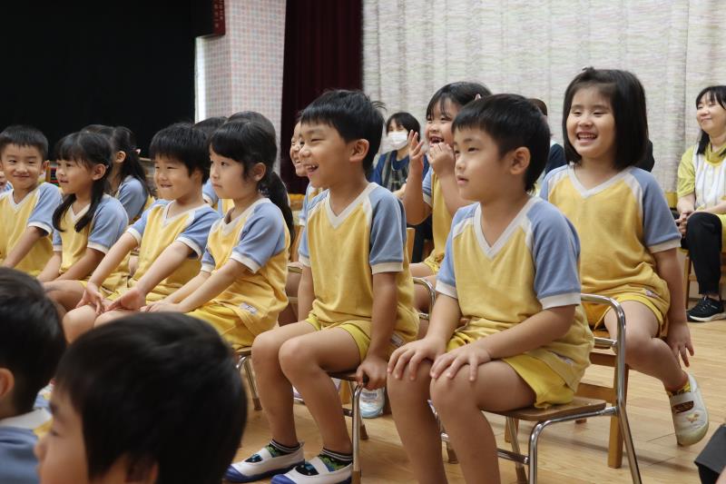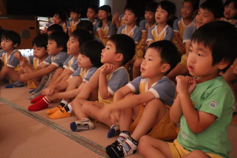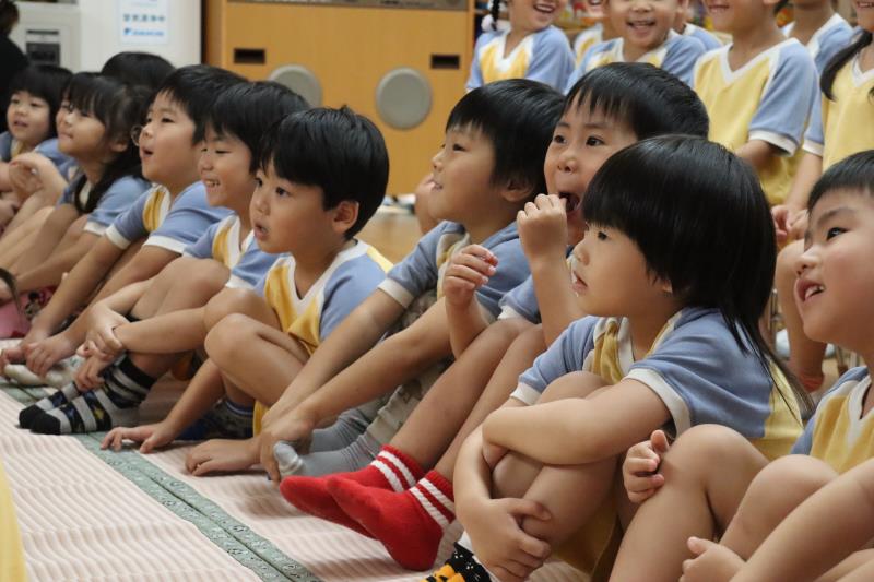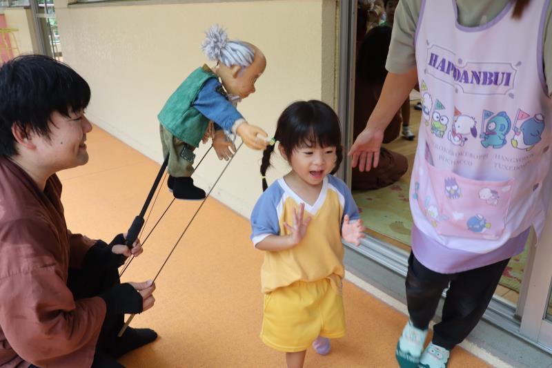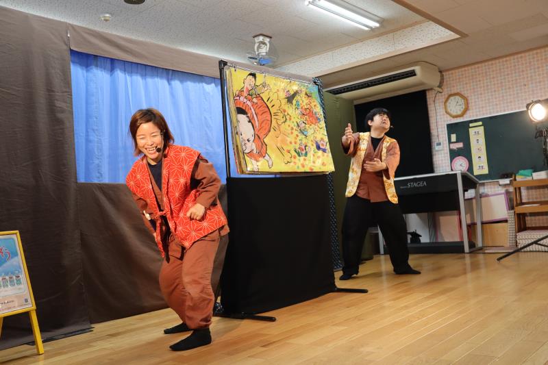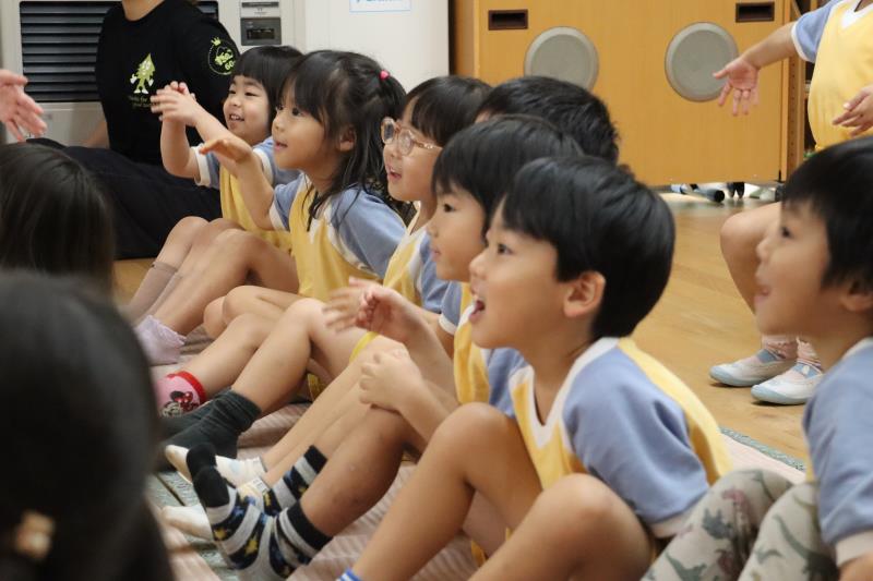 プロの方はさすがに演じられるが上手なので、子どもたちはすぐにお話の世界に引き込まれ、楽しそうに目を輝かせながら見ていました。その表情がとても可愛かったです。