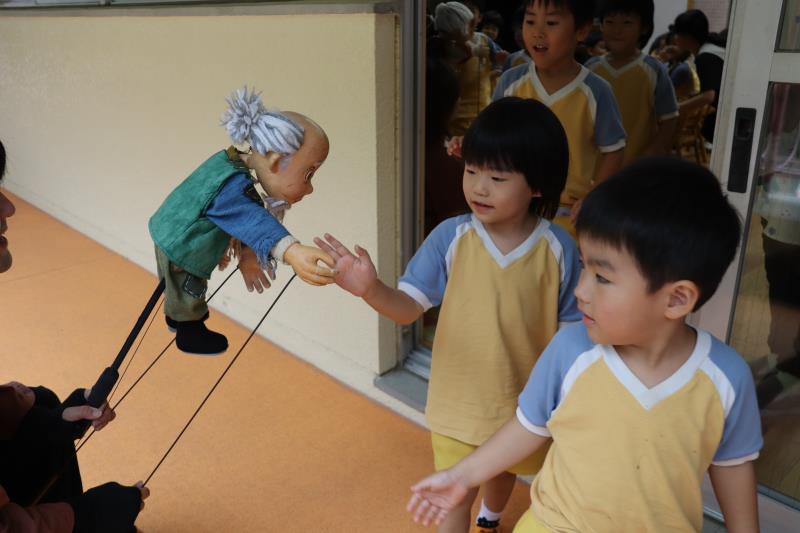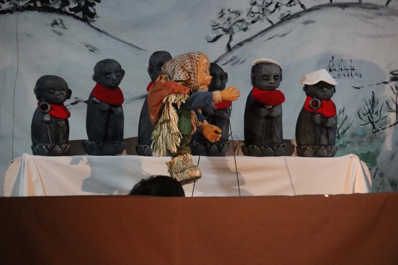 劇団すぎのこの方々が来園され、プレイルームで人形劇を観ました! 今年のメインのお話は「かさじぞう」でした。